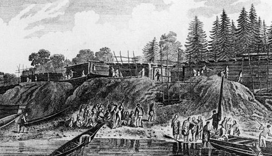 During the establishment of Fort Langley on the Fraser River, July and August entries from an 1827–28 journal (author unknown) make numerous references to the constant flow of canoes heading up the river for the salmon fishing. It names tribes, some from as far afield as Vancouver Island, and describes how the canoes moved two and three abreast lashed with planks between them to form a kind of barge that carried a whole family with its household goods. From mid-July to late August frequent journal entries note “Indians passing up in hundreds”…“Families from the Saanch [sic] village at Point Roberts have been passing in continued succession during the day all bound for the Salmon Fishery”… “Indians in swarms proceeding to the fishery above.”