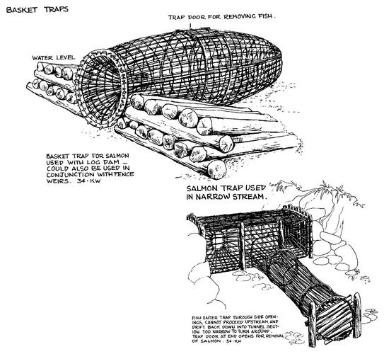 Probably the most productive of any of the fishing devices, the traps and weirs allowed large quantities of fish to be taken at a time when the salmon runs were at their peak.