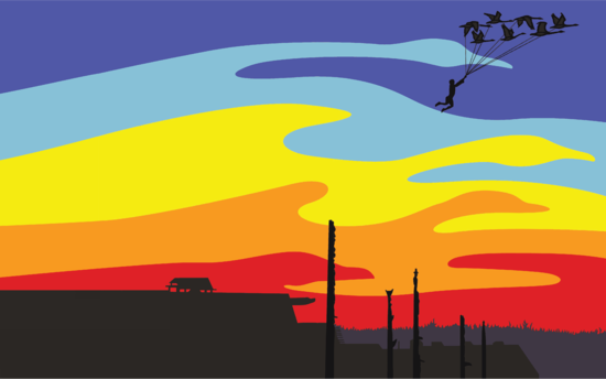 Cloudwalker hung on and before long he was up above the lake, looking down. Pretty soon he was scared. He thought, “It’s too far down. I can’t let go now.”