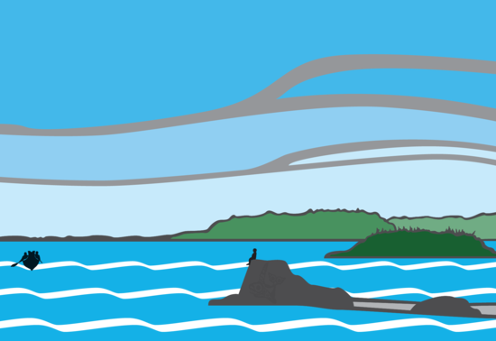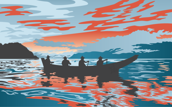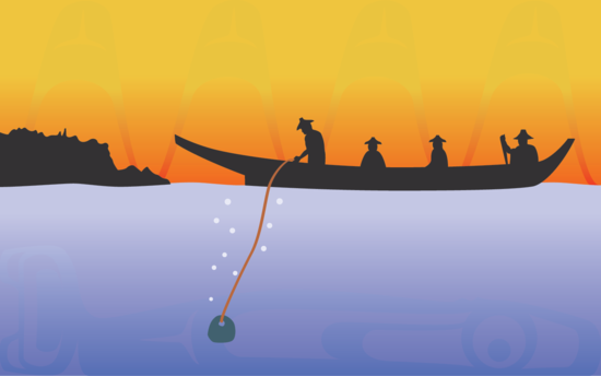 After many more lessons, the Kitkatla men were taken back to the surface. Much time had passed and it was now the middle of summer. The men sang songs and paddled with a new respect for all that lived below the surface.