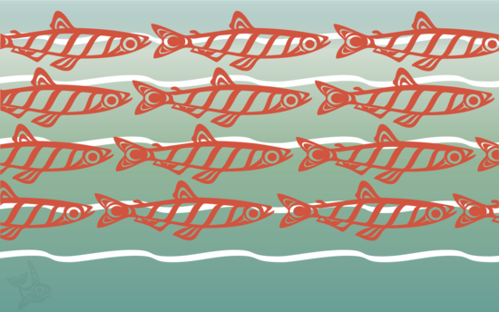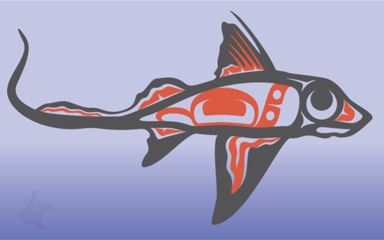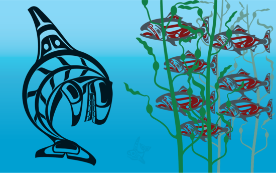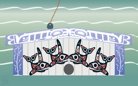The orca then brought the men to the place where the Skeena River meets the Pacific Ocean and showed them where the oolichan come in the spring. The orca explained, “You can also call these ‘candlefish,’ because when they are caught and dried you can light them on fire, they are so rich with oil.”