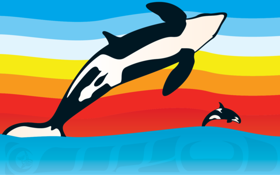 In the middle of this joyful gathering, the men remembered that they had promised to bring back food to their village. They had been gone a very long time, but their canoe was still empty! So they decided to try out what they had learned. They remembered that whenever the orca approached, all the fish would scatter and hide.