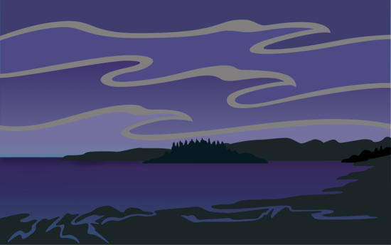 With great excitement he tucked the cedar box underneath his arm and took flight. Before long, however, Weget began to lose his way in the darkness. He became so tired flying back and forth, he was forced to drop many rocks in order to rest. Today, there are many islands along the West Coast—these are the rocks Weget dropped in the water.