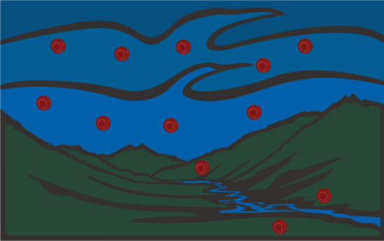 A wind started to blow. It came down the river, to the ocean, and the frogs were blown to the mouth of the Lisims where they turned to stone.